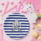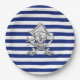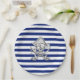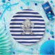 Um cromo prateado como design pirata em uma decoração de listras azuis marinho. Um presente náutico moderno. Use o link "Perguntar a este Designer" para entrar em contato conosco com suas solicitações especiais de design ou para obter assistência com qualquer necessidade do seu projeto de personalização.