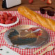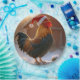 Prato De Papel Crowing Christmas Rooster Wearing a Santa Hat