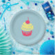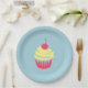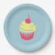 Prato De Papel Cupcake rosa e amarelo com cereja no topo