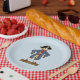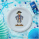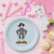 Um rapaz vestido de pirata veste um longo casaco e um pirata negro que adorava crânio e ossos cruzados neste trabalho original de Richard H. Fay.