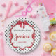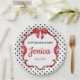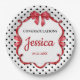 Elegant red bow and ribbon with polka dot background, baby shower paper plate, change the text to anything you want when ordering