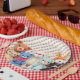 Blue, yellow and brown boy's baby shower paper plates with cute crocheted bears and bunnies.