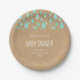 Com gotas de chuva verdes menta em um fundo rústico kraft boho caindo em direção aos seus detalhes personalizados nesta guardanapo de chá de bebê gender-neutral, sprinkle ou chá de casal. Criado por Thisisnotme©