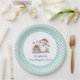 Playful cartoon cat dressed as Santa sitting beside a pink gift box with candy canes. A joyful and cheerful design for holiday products.