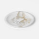 A stylish baby shower napkin with a cute, neutral bow in ivory beige. The bow adds a playful yet sophisticated flair and is a popular choice for girl, boy, gender-neutral baby, or when the gender of the baby is unknown. The background is clean, white allowing the bow to stand out. Below the bow, the text is arranged in a modern, minimal layout, using an elegant font choice. Plates are available in 2 sizes: shown here in the smaller 7-inch diameter size, they are also available in a 9-inch diameter size.
