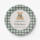 Prato De Papel Cute Teddy Bear Green Plaid Baby Shower