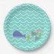 Prato De Papel Cute Turquoise Whale & Fishy Paper Plates