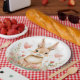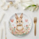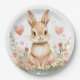 Prato De Papel Cute Woodland Rabbit Pink Hearts Pastel Flowers