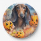 Prato De Papel Dachshund Halloween Com Pumpkins Assustado