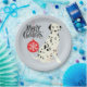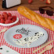 Cartões de natal da sua raça favorita de cães. Cão Dalmático com texto "Feliz Natal" e Enfeites de natal vermelho.