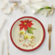 Placas de papel da Festa de Natal com adoráveis anjos de Natal dançando de uma flor de Poinsettia.