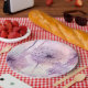Belas placas de papel de padrão de dandelion púrpura. Personalize o texto para sua celebração.