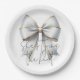 Delicado e elegante prato de papel com o título " Ela está dando o nó " para o tema da sua Festa de Noivado com Arranjo Dourado e Branco. Produtos compatíveis disponíveis na minha loja.