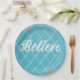 Prato De Papel Dazzling Acredite Azul Claro e Prata Verificados