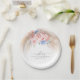 Pratos de papel rosa e azul empoeirados com flores e grama das pampas