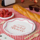 Este prato de papel de noivado moderno e retrô apresenta um fundo branco com uma moldura ondulada rosa e vermelha. Personalize-o para atender às suas necessidades. Você pode encontrar produtos compatíveis na minha loja.