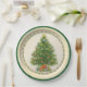 Prato divertido para festa com uma grande árvore de Natal decorada no centro. Adoráveis enfeites e presentes tornam este um design divertido para qualquer uma das suas festas de Natal. Casa, trabalho, casas abertas ou qualquer evento, eles trazem a vibe de feriado para aquele maravilhoso encontro.