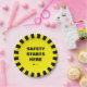 Chapas de papel de segurança para locais de trabalho amarelos e pretos com "Safety Starts Here" e o seu logótipo. Totalmente personalizável. Você pode alterar o texto, colocar o logotipo da sua empresa ou excluí-lo. Segurança primeiro!