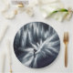 Um esquiador corre por uma encosta de neve no luar deixando um spray dinâmico de neve para trás