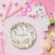 Prato De Papel Desenho de flor de bebê rosa pastel Monograma