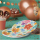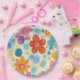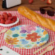 Redemoinhos de giz coloridos e rabiscos florais preenchem o desenho criando uma atmosfera alegre e caprichosa