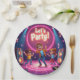 Celebre em estilo com este vibrante prato infantil "Vamos Festa!". Apresentando uma cena de néon com crianças dançantes e uma bola de disco, este prato trará alegria e entusiasmo à sua mesa de festa. Perfeito para aniversários ou qualquer ocasião divertida, é projetado para adicionar esse brilho extra às suas celebrações.