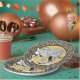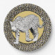 Impressão do leopardo em pratos de design de papel. Padrão de captura de olhos. Adicione glamour à sua próxima compra com esta impressão animal. Preto e ouro, sobre fundo branco.