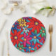 Padrão floral de margarida abstrato bordado em cores vermelha, amarela, azul e verde.