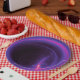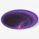Um design abstrato e teórico. Essa design graciosa é composta por grandes círculos concêntricos de roxo vívido e brilhante e rosa com uma explosão de laranja e rosa em um ponto que parece uma onda elétrica de algum tipo. Um delicado padrão fractal nebuloso.
