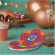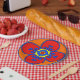 Este design é um tipo siciliano design mediterrâneo com cores típicas. Isto dá a sensação de realizar-se no feriado no mediterrâneo, sentando-se no sol sob oliveiras. Está combinando copos, guardanapo, pano de mesa e placas - tudo que você precisa para um partido italiano.