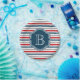 Design de temas náuticos com decoração monográfica em fundo azul, branco, vermelho e cinza