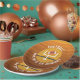 As placas de papel personalizadas do futebol americano apresentam uma bola de futebol através das miras das listras marrom a dourada. Consulte os convites CORRESPONDENTES e mais na nossa coleção.