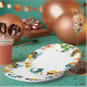 Dig into the cake with these festive plates! Featuring a vibrant watercolor scene of dinosaurs operating construction machinery amidst confetti and balloons. Durable and perfect for serving pizza, snacks, and birthday cake to hungry little builders.