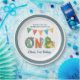 Placas de primeira Festa de aniversário do Dinossauro Moderno. Este design apresenta o script de tipografia ONE com dinossauros e obrigado para comemorar conosco. Personalize ainda mais com um nome.