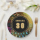 Uma vibrante e colorida placa de papel redonda de aniversário de discoteca. O nome e a idade são personalizáveis para seu Convidado de honra no centro da placa com ouro preto em um círculo redondo. O fundo é uma vibrante e colorida pista de dança com muita luz e cores dançantes. Quase como se pudesse ouvir a música e sentir o entalhe. O tema da discoteca é perfeito para todos os dançarinos felizes. Nunca pare de dançar em qualquer idade. Mantém-te jovem no coração. Disponível em diferentes tamanhos e formas. Consulte os outros produtos correspondentes nesta coleção.