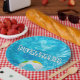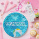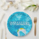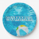 Texto de "verão" em efeito de fonte ondulante para a festa de piscina de natação com bola de praia em água piscina turquesa.