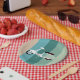 Placas de papel do partido retro listrado do patinete. Projetado por Anna-Marie Bush