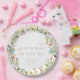 Descarregue seus amigos e entes queridos e incorpore o tema do abelhão floral da mamãe-a-abelha em seu cenário de mesa com este simples, moderno e elegante conjunto de placas de papel com tema de chá de fraldas. Este design apresenta flores silvestres de aquarela e abelha sobre fundo branco com tipografia de ouro claro.