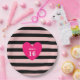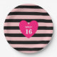 Doce 16 coração em Placa de Papel de Aniversário, listrada a rosa e a preto. O texto pode ser personalizado!