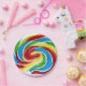 Doces Doce Coloridos Doces Arco Arco-Íris Placas de papel pirulito. Perfeito para a festa de aniversário doce