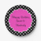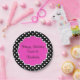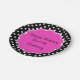 Placas do partido do doce 16 do aniversário no teste padrão à moda da podridão da polca e no espaço que cor-de-rosa do monograma do estilo do scallop você pode personalizar com a gota conhecida da menina do aniversário. Um design bonito que comemore seu aniversário no estilo.