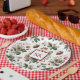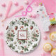 Prato De Papel Doce Morango & Padrão Floral Monograma Personaliza