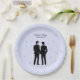 Uma elegante placa de casamento clássica com dois noivos. As silhuetas dão uma sensação romântica a este belo prato. Esta cena minimalista é perfeita para o seu casamento romântico moderno. Este olhar vai correr bem em qualquer época de casamento, primavera, verão, outono ou inverno. Excelente para um casamento moderno, e perfeito para um casamento clássico também!