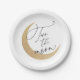 Design apresenta a lua dourada falsa com "Duas a Lua" em um texto caligrafico fofo. Personalize com suas informações ou clique em "Clique para personalizar mais" para editar estilos de fonte, tamanho e cores.