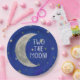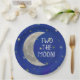 Placas festas com o tema "Duas Luas" para segunda festa de aniversário. A lua crescente das cinzas está sobre um fundo azul escuro do céu noturno com estrelas de prata e ouro. Estas coordenadas com os outros designs temáticos do espaço externo no meu compro...Clique para ver a coleção de cheios: https://www.zazzle.com/collections/119762226543392532