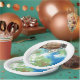 Uma ilustração feita com uma aquarela pintada à mão mostrando um besouro majestoso tocando uma frágil e erodida Terra. A trabalho de arte simboliza a resiliência da natureza, a degradação ambiental e a relação intrincada entre insetos e o nosso planeta. Ideal para designs ecologicamente conscientes, arte provocadora de pensamentos, ou amantes da entomologia.