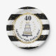 Prato De Papel Dourada Glitter Black Stripes Qualquer Idade Feliz