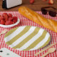 Prato De Papel Douradas faixas, tiras brancas, padrão riscado
