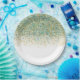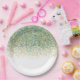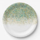 Prato De Papel Dourado Branco e Brilho Azul Turquesa Glam Moderno
