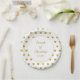 Dourado White Wedding Paper Plates com Dourado padrão cardíaco num fundo branco.